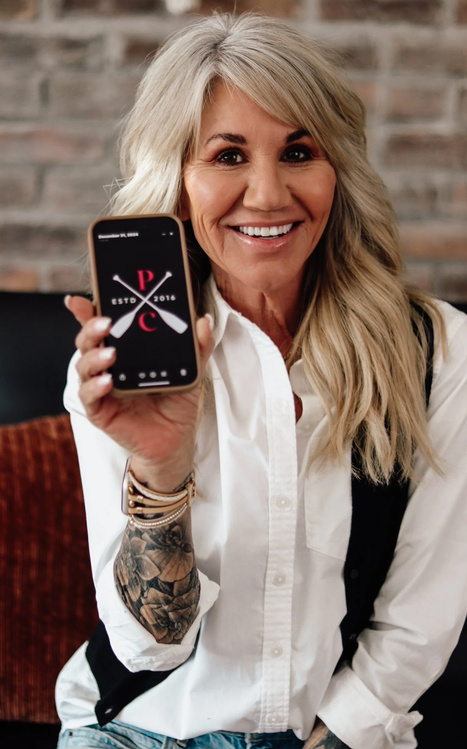 We are down a set of concrete stairs with twinkle lights in the window. Look for the BLACK DOOR and our business sign!